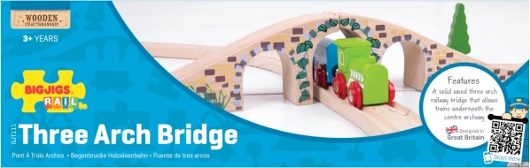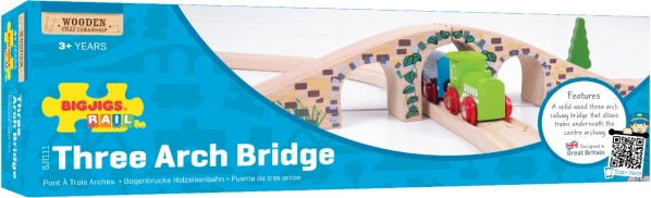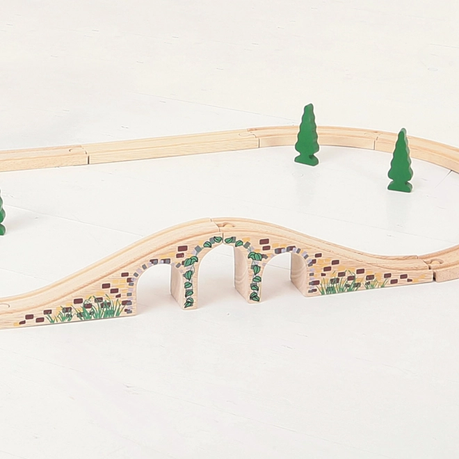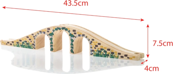 Denne stilfulde trebuen bro er et perfekt supplement til enhver træ-togbane. Takket være de realistiske detaljer i stenmur og den glatte finish giver den din bane niveauforskelle og visuel attraktivitet. Muliggør, at tog kan køre både over og under broen og skaber sjove legescenarier.
