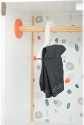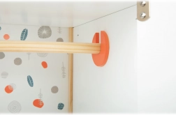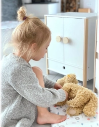 Dette stilfulde dukkeskab fra Little Button-serien kombinerer rene linjer, naturlige materialer og en funktionel indvendig opdeling. Børn har alt inden for rækkevidde: en tøjstang med bøjler til kjoler, aftagelige hylder til tilbehør og en rummelig skuffe til småting. Det minimalistiske design i blide nuancer passer naturligt ind i et moderne hjem.