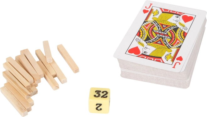 Oplev en righoldig samling af bord-, bræt- og kortspil i én elegant træboks. Takket være de opdelte rum og filtbunden har hver del sin plads, og intet bliver væk. Sættet byder på både hurtige og strategiske spil til forskellige lejligheder – fra hyggelige eftermiddage med børnene til aftenudfordringer med venner.