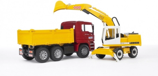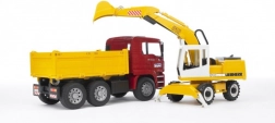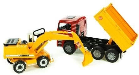Dette fantastiske byggesæt fra Bruder omfatter en MAN TGA-lastbil med bløde dæk og en praktisk tipkasse. Derudover medfølger en funktionel Liebherr-gravemaskine, der har stabiliserende støtteben, profilerede dæk og et graveaggregat med en 360° drejelig kabine. Produktet er solidt udført i Tyskland af holdbare materialer.