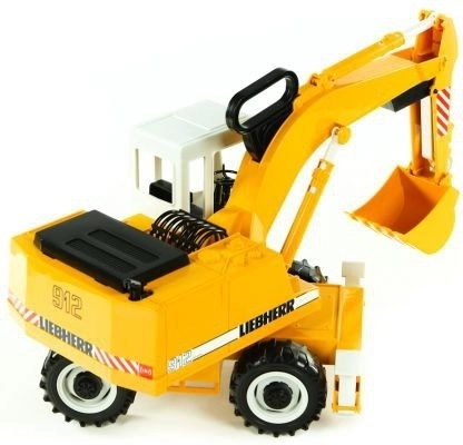 Liebherr-gravemaskinen har en kabine, der drejer 360°, og et fuldt funktionelt graveaggregat, som giver en realistisk legeoplevelse.