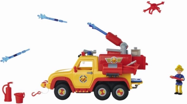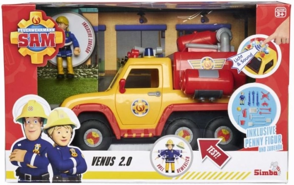 Den fantastiske brandbil Venus 2.0 er den perfekte tilføjelse til ethvert barns leg, inspireret af Brandmand Sam-eventyr. Modellen tilbyder innovative lys- og lydeffekter for at give børnene en mere realistisk oplevelse. Funktionen med vandpil affyring tager sig af slukning af brande selv på de højeste bygninger. Bilen har åbningsdøre, der giver figuren Penny, helten med bevægelige lemmer, mulighed for at køre til ulykkesstedet.