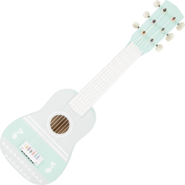 Dette børnemusiksæt i blide pastelfarver indeholder alt til den første musikudforskning: guitar (ca. 54 cm), xylofon med 8 toner og en tromme med rem og et par køller. Kombinationen af træ, metal og plast sikrer holdbarhed og en behagelig lyd, som åbner en verden af rytmer og melodier for små musikere.