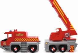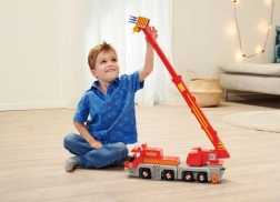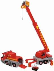 Kranen roterer jævnt hele vejen rundt, og armen kan skydes ud op til 75 cm. Der er også en vandkanon med plastpile til sikker “slukning” samt et mekanisk spil til redningsaktioner.