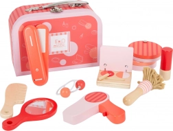 Denne kosmetik kuffert til børn fra mærket Small Foot er ideel til små kunstnere, der elsker rolleleg og ønsker at føle sig som voksne. Sættet indeholder 10 forskellige kosmetikredskaber lavet af kvalitets træ.