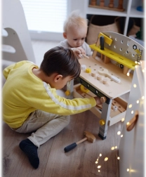Dette børne arbejdsbænk Miniwob bringer virkelig meget sjov til børneværkstedet. Med sin kompakte størrelse og klassiske design kan den nemt opbevares i mindre rum. Bænken er udstyret med 5 stykker træværktøj og et stort udvalg af tilbehør, der letter fantasifuld leg og praktisk indlæring af færdigheder.