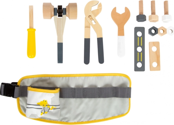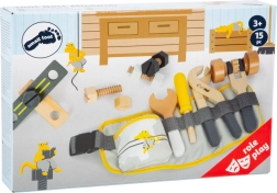 Værktøjet i dette sæt er lavet af holdbart træ og plastik, som sikrer lang levetid og sikkerhed under legen.