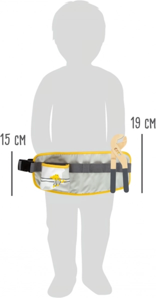 Børne værktøjsbælte Miniwob er fuldstændig tilpasningsdygtigt og muliggør sikker fastgørelse med klik-spænde. Dette legende bælte indeholder: