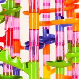 Sættet gør det muligt at bygge stabile tårne, snoede rutsjebaner og tunneler. Fantastisk visuelt udtryk og jævnt kugleforløb er garanteret.