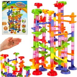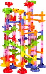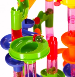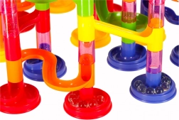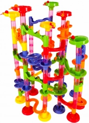 Denne kuglebane lader dig designe og bygge dine egne labyrinter af farverige plastdele. Skab unikke konstruktioner, arranger kapløb og se kuglerne suse gennem spiraler, tunneler og sving. Takket være intuitiv samling lærer børn logisk tænkning og problemløsning.