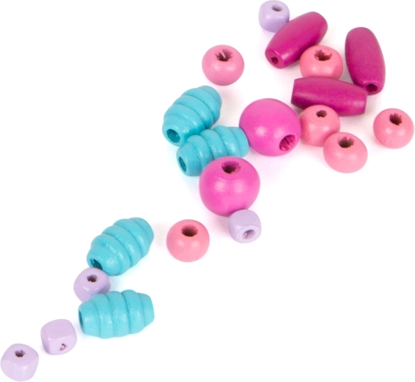 Dette kompakte perlesæt vil glæde enhver lille skaber. Med fem harmoniske farver og forskellige former bliver det let at lave unikke halskæder, armbånd og vedhæng. Trææsken med rum holder alle delene på plads og gør opbevaringen nem.
