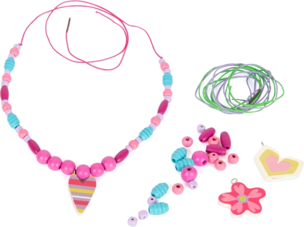 Børn træner finmotorik, koncentration og tålmodighed, når de trækker perler på snor. Takket være tre snore og tre søde vedhæng kan der skabes smykker efter fantasien – perfekt til kreativ leg, gaver og hyggeligt fælles værksted.