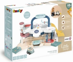 Smoby Lille min første garage er et fantastisk legetøj fyldt med sjove funktioner designet til de mindste. Garagen indeholder en magisk elevator, bilvask med roterende børster, benzinstation, helipad og meget mere, som giver børn mulighed for at udvikle deres fantasi og koordination under leg både på land og i luften.