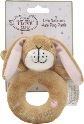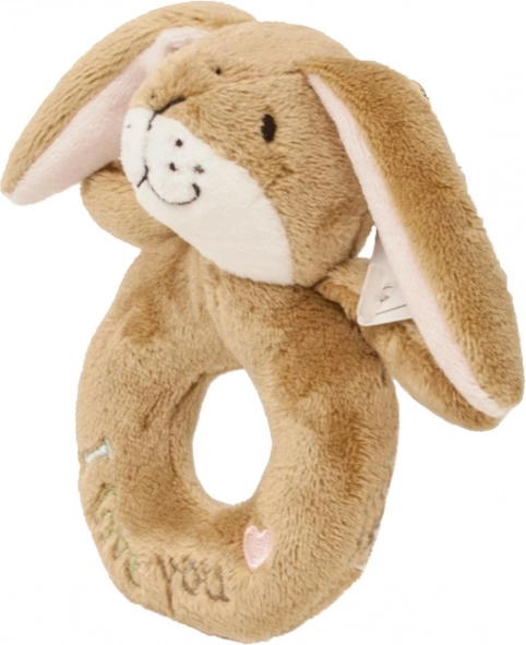Denne yndige kaninrangle inspireret af bogen Gæt hvor højt jeg elsker dig bringer glæde og underholdning til de allermindste. Fremstillet af blød plyds med broderet ansigt og teksten I love you, er den en perfekt gave til at stimulere barnets sanser.