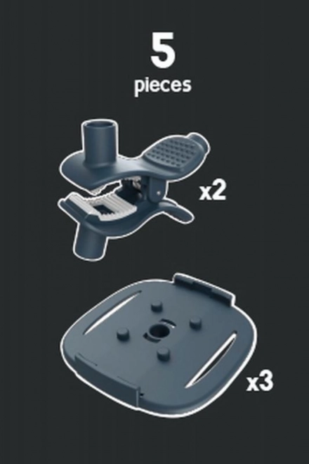 Ekstra FleXtreme-sæt med holdere til Smoby FleXtreme racerbanens verden, hvor børn kan bygge de vildeste baner med fleksible skinner med ordentlige stigninger, fald og vilde sving. Sættet indeholder 2 Multi-Grip fastgørelsesklemmer og 3 skinneunderstøtninger. Skinneunderstøtningerne kan fastgøres til et af de tre punkter på fastgørelsesklemmerne; deres brug giver endnu bedre kontrol i sving og forhindrer, at banen løsner sig på steder med skarpe kurver. Multi-Grip-klemmens fastgørelsessystem er let at forstå selv for små børn og gør det muligt at fastgøre banen til forskellige forhindringer: til et bord, på gardiner, til en hylde, en stol, på et skab, på en gardinstang – kort sagt overalt, hvor du vil føre banen. Klemmerne kan fastgøres på forskellige måder, og det er muligt at montere op til tre skinneunderstøtninger på dem.
