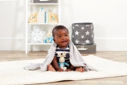Den praktiske gaveæske med illustrationer gør det til et perfekt valg til fejringer og den første babystartpakke. Tæppet kan nemt vaskes i maskine, materialerne er skånsomme mod sart børnehud og er velegnede til nyfødte.