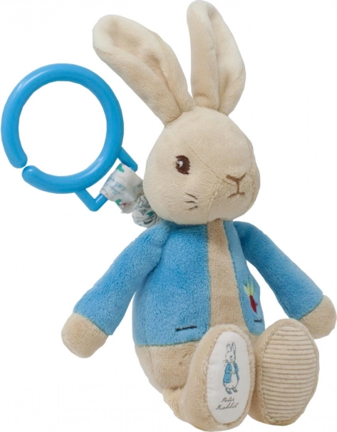 Den trækkelige kanin PETER RABBIT i den ikoniske blå jakke er designet til de mindste hænder. Takket være plastikkenringen kan den nemt fastgøres til barnevogn, autostol eller over sengen. Barnet griber legetøjet og trækker – når det slippes, vender kaninen roligt tilbage, hvilket understøtter finmotorik, øje–hånd-koordination og sansemæssig perception.