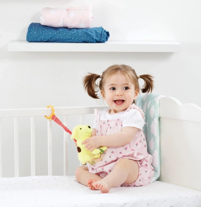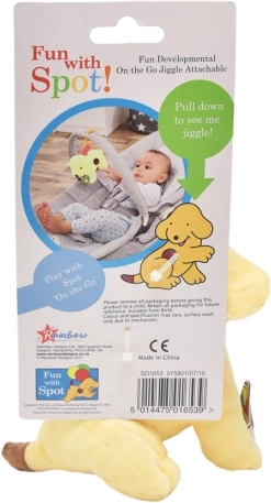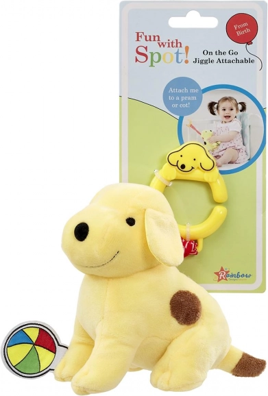 Med plys-hunden Spot får dit barn masser af sjov. Legetøjet understøtter udviklingen af finmotorik og sanseopfattelse. Hunden er 13 cm høj, og det farverige design fanger ethvert barns interesse. Den kan nemt fastgøres til sengen eller autostolen, og takket være de lange stropper er den velegnet til små børnehænder.