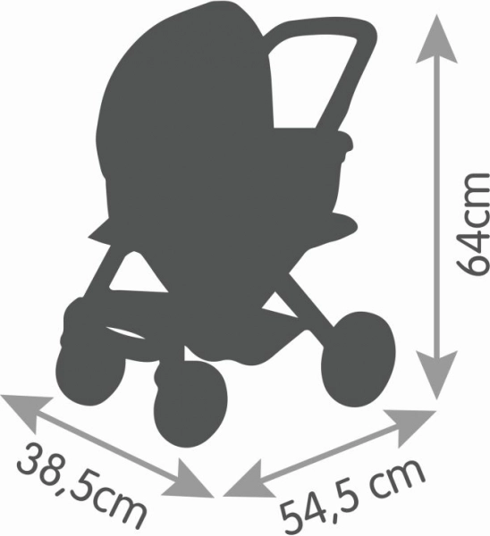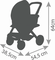 De robuste betræk i plasttekstil er holdbare og lette at vedligeholde – tør dem blot af med en fugtig klud. Drejelige forhjul og en støjdæmpende belægning på hjulene sørger for jævn, stille og stabil kørsel både inde og ude. Velegnet til dukker op til 42 cm (dukke medfølger ikke).