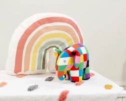 Plys-elefanten ELMER er en elsket figur fra David McKees bøger og bringer glæde og komfort til børneværelset. Dens farverige patchwork fanger spædbørns og tumlingers opmærksomhed, mens den bløde krop indbyder til kram. Højden på ca. 20 cm gør den til en ideel ven i sengen og på farten.