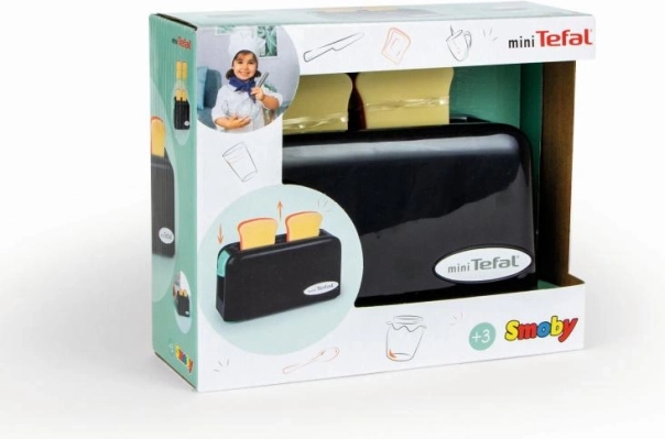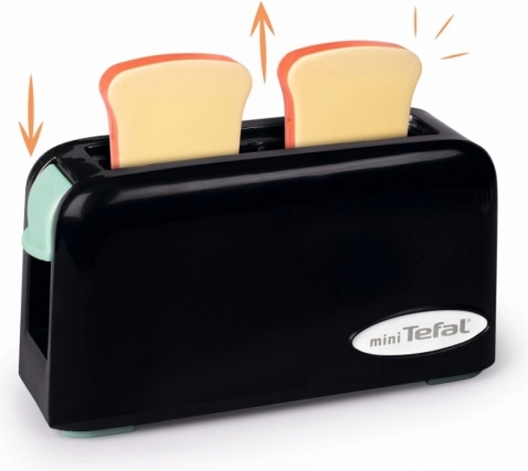 Mini Tefal børnebrødrister tilbyder realistisk leg for små kokke. Denne kompakte brødrister skubber automatisk toast op, hvilket giver børnene en sjov efterligning af ægte brødristning.