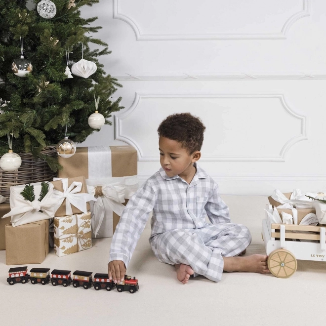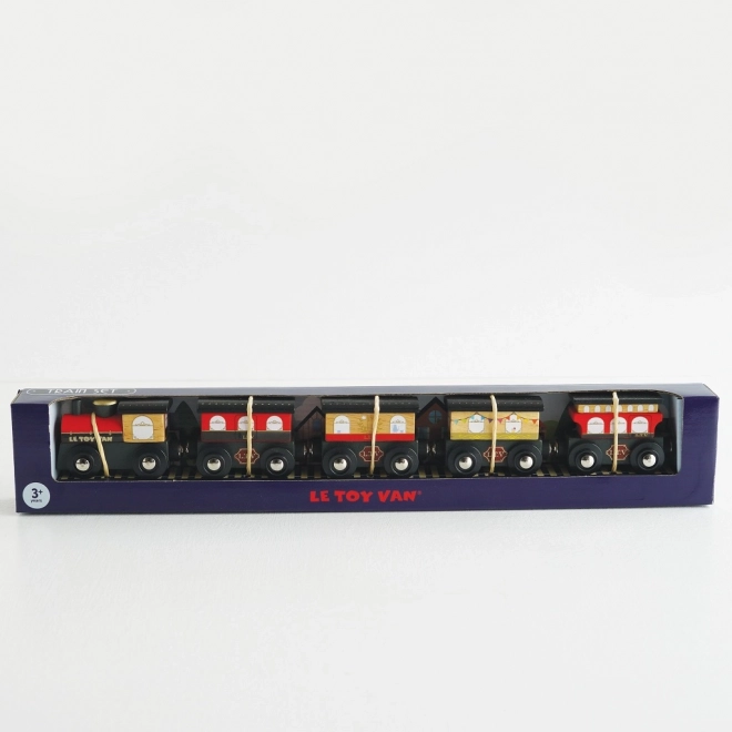 Tag på en elegant tur med trætoget Royal Express i dyb rød med gyldne detaljer. Det præcist hånddekorerede sæt er lavet af robust kvalitets gummitræ fra bæredygtige kilder – ideelt til daglig leg.
