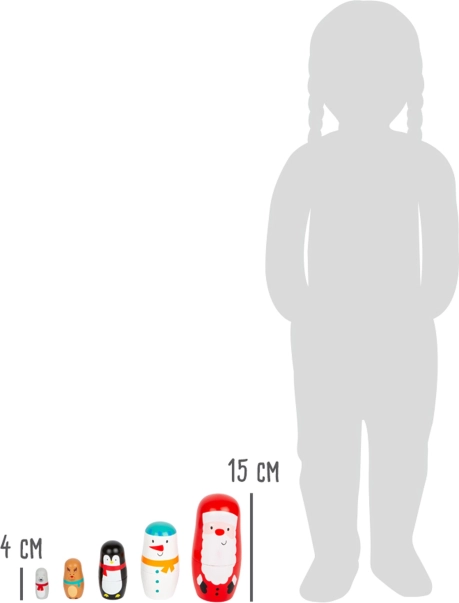 Oplev julens magi med Small Foots træ-matrjosker. Fem præcist malede figurer i klassisk russisk stil gemmer sig i hinanden – fra den største til den mindste. Sættet er perfekt som julepynt og som en kær legeting, der naturligt støtter barnets færdigheder.