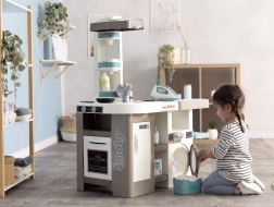 To realistiske madlavningslyde, ovn, køleskab, vask og emhætte med espressomaskine og sodavandsdispenser stimulerer fantasien og lærer børnene madlavningens grundprincipper.