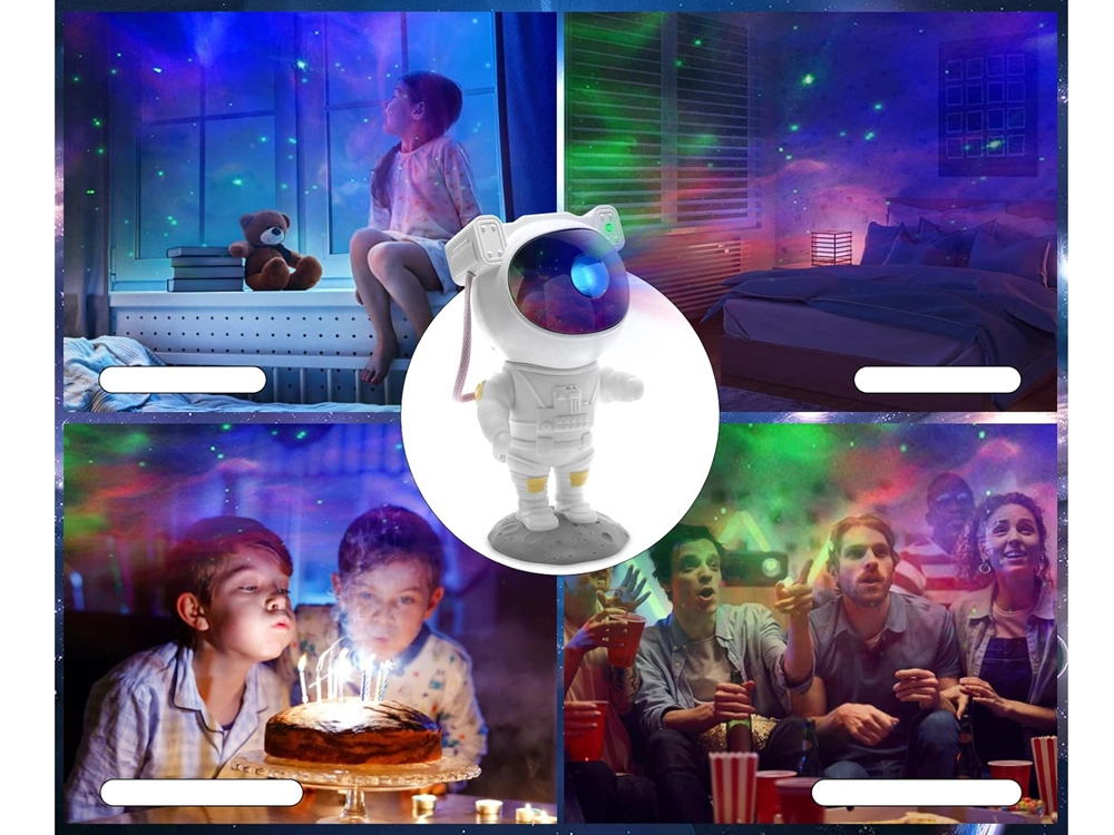 Stjerneprojektor / natlampe Astronaut er det perfekte tilbehør for enhver elsker af fjerne galakser og kosmiske eventyr. Med denne projektor kan du nemt og hurtigt opleve magien ved universet fra dit eget hjem.