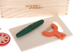 Sættet er perfekt til både selvstændig leg og fælles madlavning med forældre: det styrker hånd-øje-koordination, udvikler ordforråd (navne på fødevarer, dele) og kreativ rolleleg. Den æstetiske trækasse hjælper med at holde orden og gør det nemt at rydde hurtigt op.