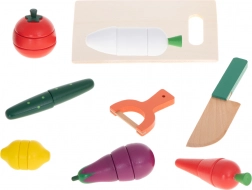 Hver grøntsag er opdelt i dele, som holdes sammen af magneter. Børn kan gentagne gange “skære over” og samle igen, hvilket træner finmotorik og logik.