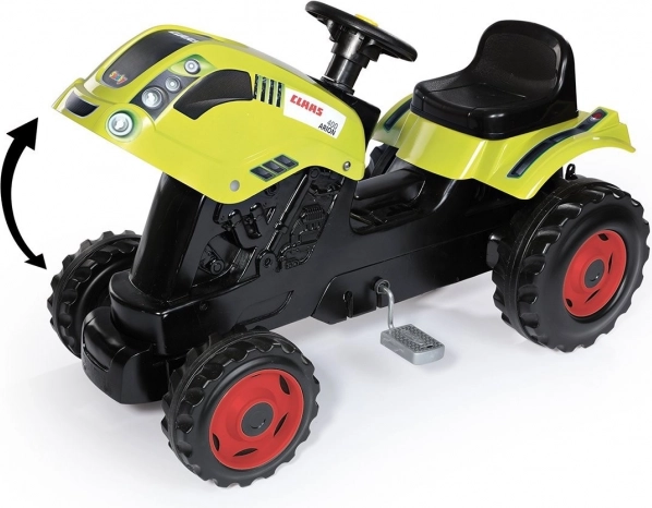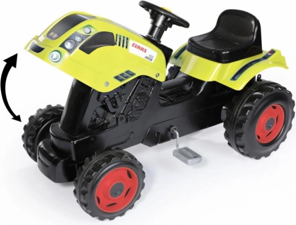 Sæt dig bag rattet på den stilfulde trampetraktor CLAAS og kør ud på gårdspladsen, i haven eller på legepladsen. Realistiske detaljer som åbnbar motorhjelm og et funktionelt horn stimulerer fantasien og den virkelighedsnære leg. Takket være det justerbare sæde vokser traktoren med barnet og sikrer en komfortabel siddestilling.