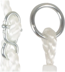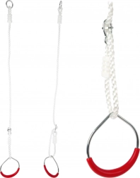Fire robuste reb med rebbeskytter i ottetal giver præcis højdejustering. To sæt reb gør det muligt at bruge to gynger samtidig.