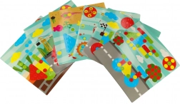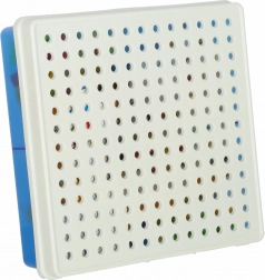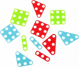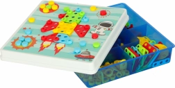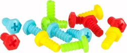 Det store sæt med farvede skruer, plader og formdele vækker kreativiteten og støtter selvstændig skabelse af mosaikker og modeller.
