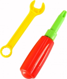 Børn kan skrue som rigtige håndværkere takket være den sikre batteridrevne boremaskine, skruetrækker og nøgle – perfekt til motoriktræning.