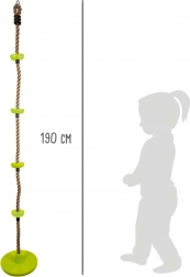 2-i-1 klatregynge fra Small Foot kombinerer et klatretov med fire grønne trin og en stor nederste disk, der fungerer som sæde. Takket være robust plast og skridsikre riller er grebet sikkert og komfortabelt. Tovet er ideelt til aktiv leg, udvikling af motorik og styrkelse af hele kroppen.