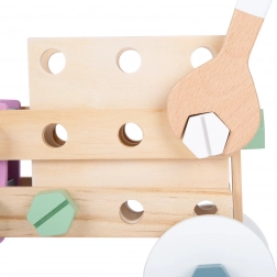 Dette kvalitetsbyggesæt i nordisk stil forvandler små byggere til rigtige ingeniører. Med nøgle og skruetrækker samler børnene selv forskellige modeller – fra køretøjer til simple konstruktioner – og kan lige så let skille dem ad igen. Den synlige årestruktur i træet kombineret med pastelfarver stimulerer sanserne og gør legen behagelig og sikker.