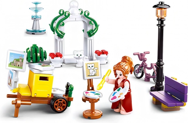Vi præsenterer Sluban Pigens Drøm Landsby - Maleren i parken, et byggesæt der bringer timer af sjov og kreativ leg. Indeholder 114 dele og en figur med unikke bevægelige dele, hvilket gør det nemt at dykke ned i rollen som maler i det fri.