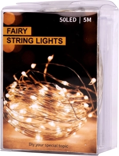 Skab en magisk stemning derhjemme med en subtil LED-lyskæde på en tynd tråd, 5 m lang med 50 dioder i kold hvid. Takket være batteridrift kan du placere den hvor som helst uden stikkontakt, ideel til juledekorationer, i glas, flasker eller som romantisk, ambient belysning hele året.