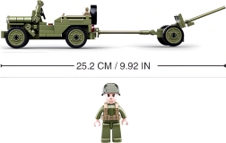 Sættet inkluderer en soldat med drejeligt hoved og led, der kan bevæges. Han kan nemt placeres i jeepen eller gøres klar til at betjene kanonen.