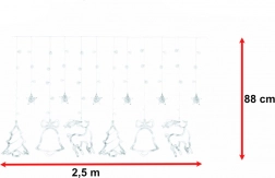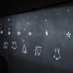 Denne jule-LED-gardin forvandler vinduer, vægge og nicher til eventyrlig dekoration. Den kolde hvide lysfarve fremhæver moderne interiører og giver dem et elegant vinterpræg – ideel til højtidshygge, fotos og aftenafslapning.
