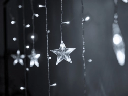 Med 138 energibesparende LED og 8 lysprogrammer kan du nemt skifte fra roligt glimt til livligt blink. Netstrøm sikrer driftssikkerhed, det 3 m lange tilledningskabel gør placeringen let, og det flade stik med lås til sammenslutning gør det muligt at forbinde to gardiner eller kompatible sæt til en større installation.