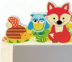 Denne kvalitets knagerække i træ med det legende motiv Skovdyr giver børneværelset farver og orden. Takket være fem solide kroge organiserer du nemt jakker, hoodies, rygsække og tilbehør. Det integrerede spejl af ubrudt plexiglas er let, sikkert og ideelt til daglig brug.