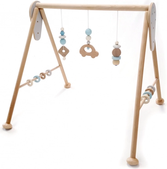 Dette træstativ er udstyret med flytbare elementer og rasleklokker, som du kan tilpasse til dit barns behov. Nem montering gør det muligt at opstille stativet på tre forskellige højdeniveauer, hvilket sikrer langvarig brug af legetøjet.