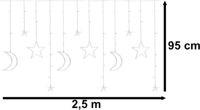 Den generøse bredde på 2,5 m og motiverne af måner og stjerner forvandler hvert vindue eller hver væg til en hyggelig lyskulisse. Den kolde hvide farve understreger vinterstemningen og giver interiøret et rent, moderne look.