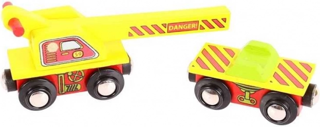 Praktisk tilbehør til togbane i træ: Trævogn med kran BIGJIGS RAIL tilbyder et bevægeligt magnetisk arm til nem lastning, er kompatibel med de fleste træsksinner og er fremstillet af kvalitets- og sikre materialer. Understøtter børns fantasi, finmotorik og koordination.