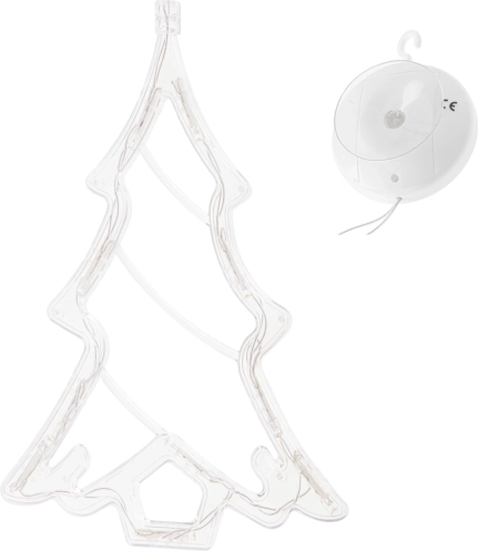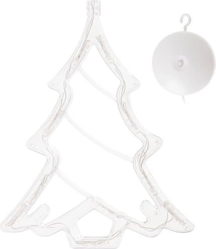 Stilfuld hængende dekoration i form af et træ med 10 LED, der oplyser dit vindue med varmt hvidt lys. Takket være batteridrift og en praktisk sugekop kan du placere den hvor som helst – uden kabler og begrænsninger. Varmt hvidt lys, nem montering med sugekop og sikker batteridrift skaber en hyggelig, festlig atmosfære på vinteraftener.