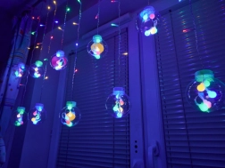 Det hængende lysgardin med plastkugler forvandler dit interiør til maleriske vinterscener.