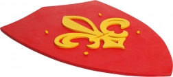 Den markante røde farve og den gule lilje giver skjoldet middelalderlig charme. Passer perfekt til kostumer og som udsmykning på børneværelset.