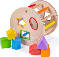 Denne trævalse med former er et glimrende valg som det første læringslegetøj. De farvede geometriske dele lægges i de tilsvarende åbninger, hvorved børn træner logisk tænkning, tålmodighed og præcision i grebet. Når den rulles hen over gulvet, udsender legetøjet behagelige klaprende lyde, som motiverer til yderligere udforskning.